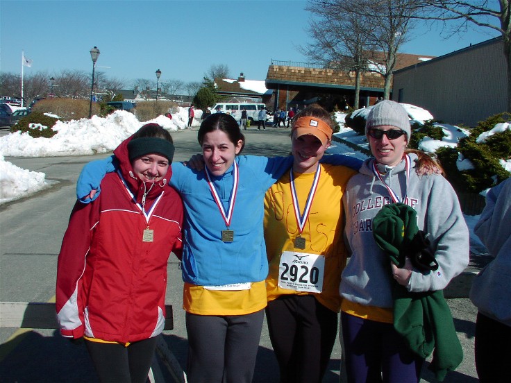 (the winning team after the race. sheila, coach b, barbara, coach em)